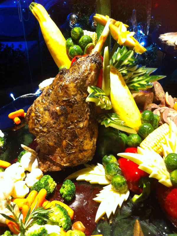 这个羊腿展示的时候已经看起来不错吃,但,端上桌是配搭不同的酱料其实也不错只是可能放久了有点干,如果在自助餐时现切现吃的话,就完美了。(现在你知道试吃也其实不一定吃到好西了吧?)