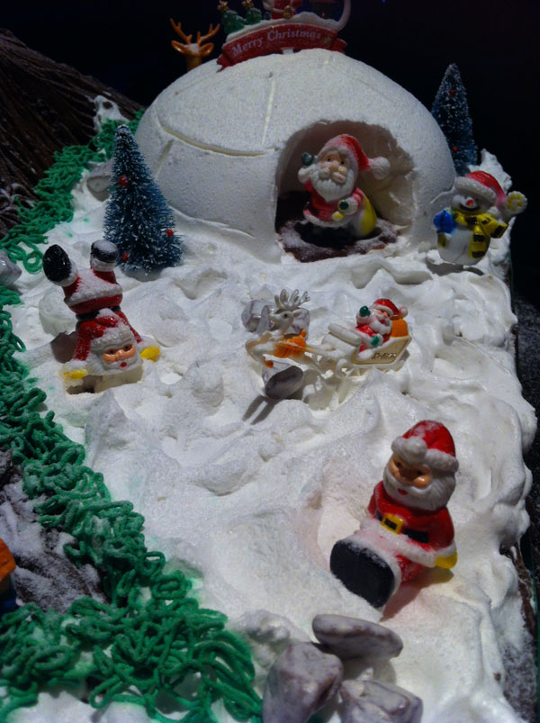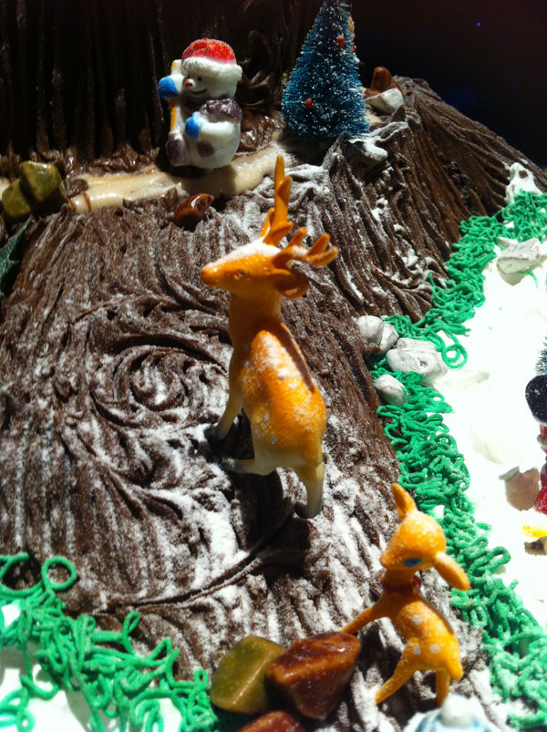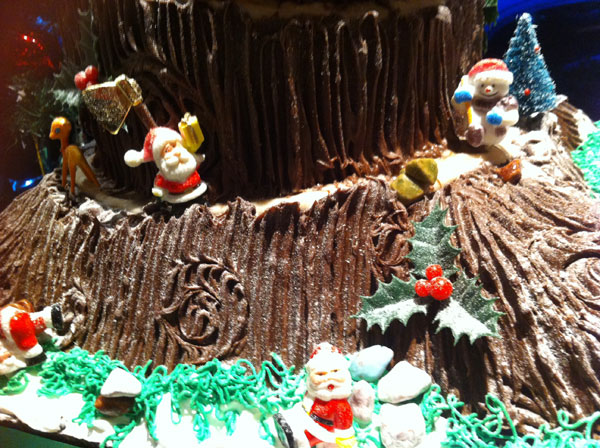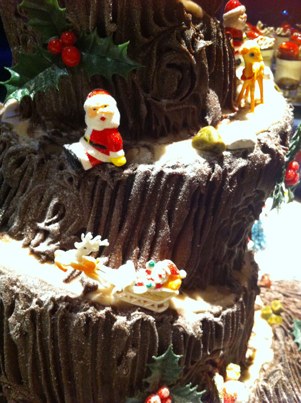 不过这些都是供摆设而已,真正吃的已经是切好的树桐蛋糕了。除了这巨大的树桐蛋糕,还有圣诞布丁啊!同样被布置得美轮美奂啊!舍得吃吗?