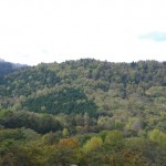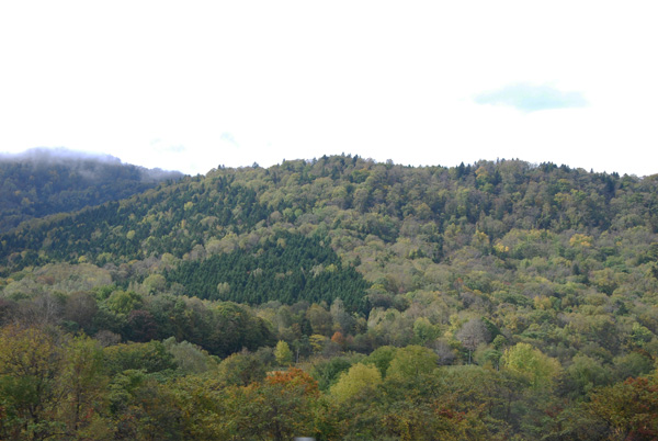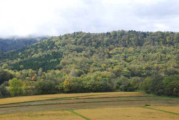 北海道的一些高速公路只有来往两条狭小的路道,像是在山中央劈开了一条小径,让车辆穿行。北海道东山脉连绵,高速公路都建于山林里或以隧道穿过高山。北海道初秋,树叶转黄,远远望去,令人心旷神怡。