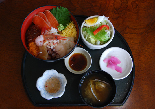 从硫磺山到網走,沿途湖光十色,窗外风景从高山田野转换至无敌海景,顺着鄂霍次克海岸线,来到了一家海鲜餐厅。经过整个早上的行程,在最饥肠辘辘的时刻来一客日本定食海鲜午餐,最令人满足。