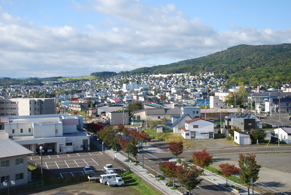 从酒店望出去的纹别市景,这是背山的景色,面海的忘记拍!