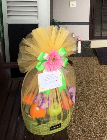 5)接着就接到一单在Tawakal医院旁边的小礼品礼篮店的一个水果礼篮的递送,送到Ampang Jaya去,不远,大概也是15分钟车程。抵达后,收件人在屋里不出来,吩咐我把礼篮放在门外的长凳上,拍了照片就可以离去了。