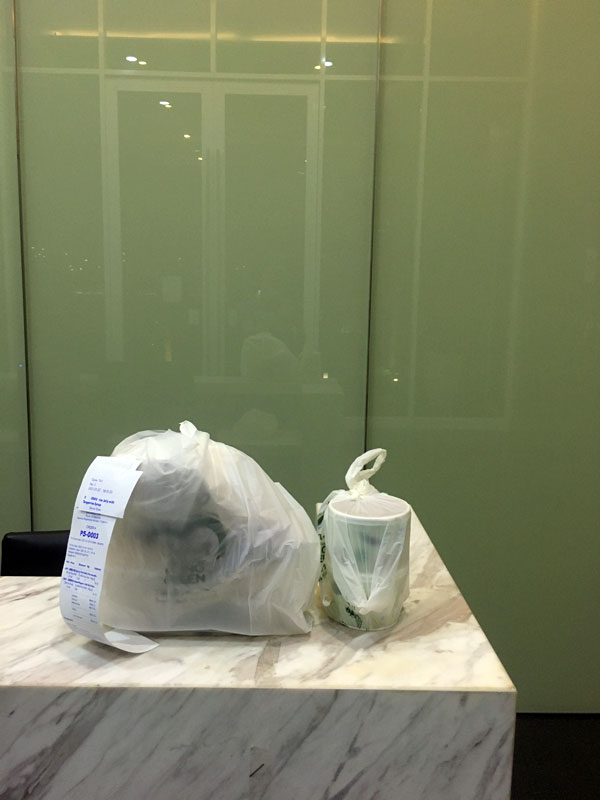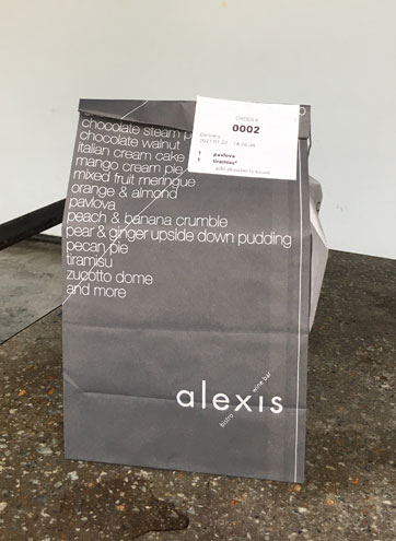 6)离开后,就把车停在路边等待附近的单子。叮叮~大东方保险商场的Alexis餐厅有蛋糕要送,10分钟车程就抵达,赶快去吧!这个地方喔熟悉,后面有loading bay给送货员停车,然后从卸货区门口进入大厦。不到10分钟就拿到了蛋糕,送货去。这个单子注明放在保安亭外的长桌上就可以了。我放了以后,就打电话给收件人,但电话打不通,就知道离去,因为收件人已经预先指示交货方式的话,就可以避免一劫。