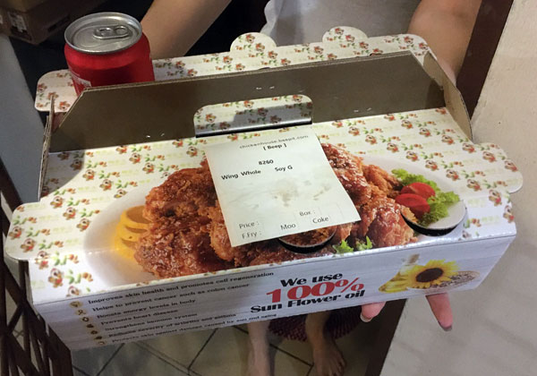 10)这时已经到了8点多,市中心几乎没有单子了。我在路旁等了一些时间,最后拿下了一单在Solaris的韩国炸鸡店的单子,就飞车去了。去到那里,也只是这家店仍然在营业而已,拿了单子以后,就赶去送货地点。抵达后,折腾了一下,才找到收件人的公寓大楼,送上去。这时接近9点了,应该是没有单子了,我就回家吧!